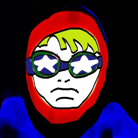 ~boy with red hood and star goggles on~