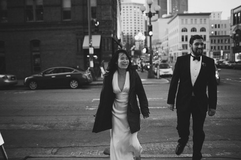 Amy & Josh ditched their reception for a little sunset walk around downtown Seattle.