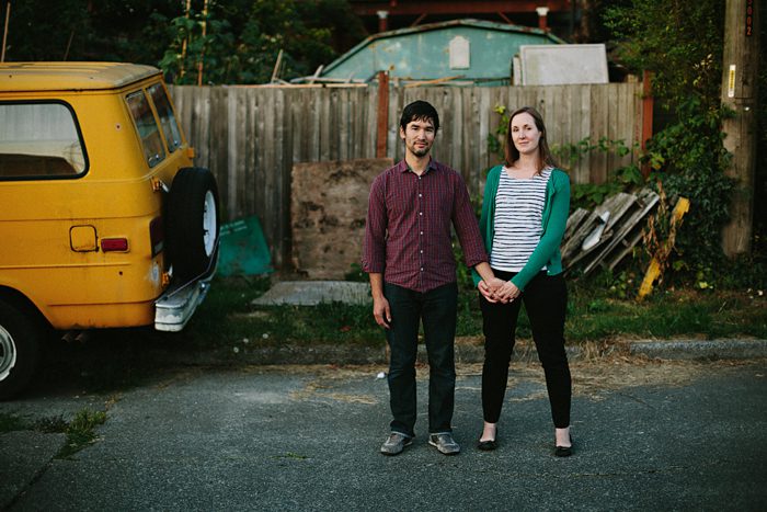 Kristen, Aaron, Kalina, Robot, and neighborhood cat. Beacon Hill. Seattle, WA.